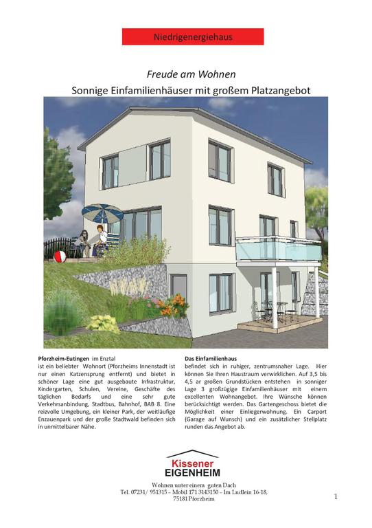 Auf ca. 4 ar großem Grundstück entstehen in sonniger, ruhiger, zentrumsnaher Lage 3 großzügige Einfamilienhäuser mit einem excellenten Wohnangebot. Das Gartengeschoss bietet die Möglichkeit einer Einliegerwohnung. Ein Carport (Garage auf Wunsch) und ein zusätzlicher Stellplatz runden das Angebot ab.